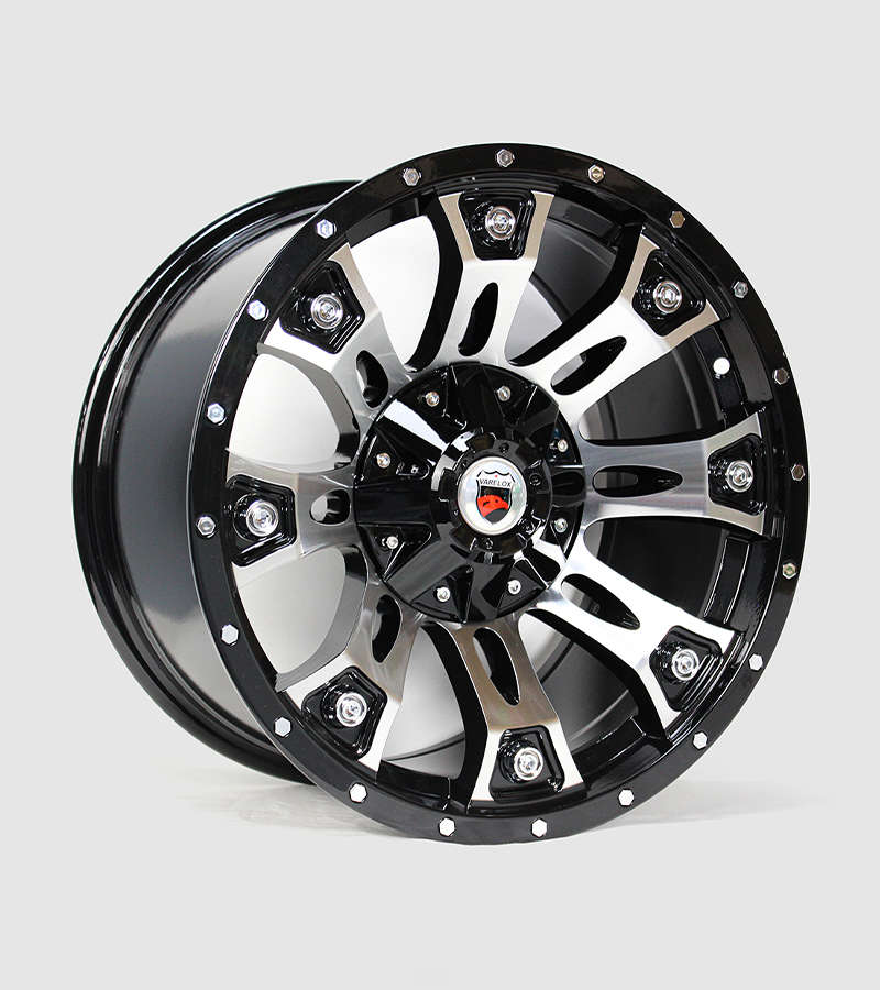 Aro color negro brillante de 8 brazos pulidos y borde frontal negro con detalles plateados.