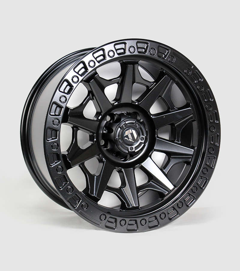 Aro color negro matte con 10 brazos y relieves en borde frontal y detalles plateados.